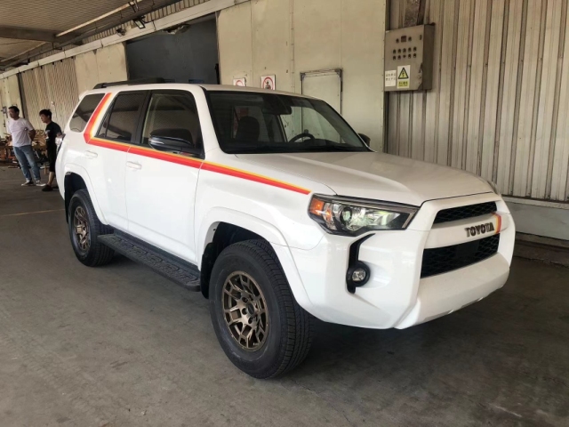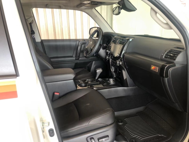 23款超霸 40周年特别版 白黑 装备:雷达测距、车道违背体系、并道辅佐、天窗、黑色行李架、主副电动座椅、前排加热座椅、方向盘加热、线周年留念版彩条、主动大灯, 8英寸中控屏,带发动机盖进气口、拖钩、全时四驱、17寸合金轮毂、防盗螺丝,四季脚垫。 4Runner车身色彩的后门装修青铜色 青铜缝线青铜TRD轮 内部牌子 车身色彩丰田传统前格栅丰田铜奖 40周年留念地毯地垫 40周年身体图形 青铜阀座缝合 40周年特别版 40周年留念座椅头枕罩。 40周年校庆外部徽章 黑色喷漆车顶栏杆